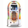 The more digital focus of the Rock-Ola Slimline Music Center jukebox means it is better suited than ever to mobile devices and sophisticated MP3 players, allowing you to download directly from a USB device, sync playlists to your device, or simply play your MP3 directly through the jukebox.